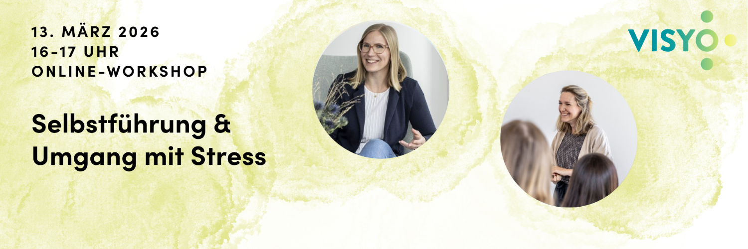 In unserem zweiten Online-Workshop zum Thema Selbstführung setzen wir den Fokus auf das Thema Umgang mit Stress. Nathalie Neumeyer und Jenny Buchwald möchten das Angebot von VISYO vorstellen und wieder gibt es Theorieimpulse mit ersten Übungen zum Ausprobieren.